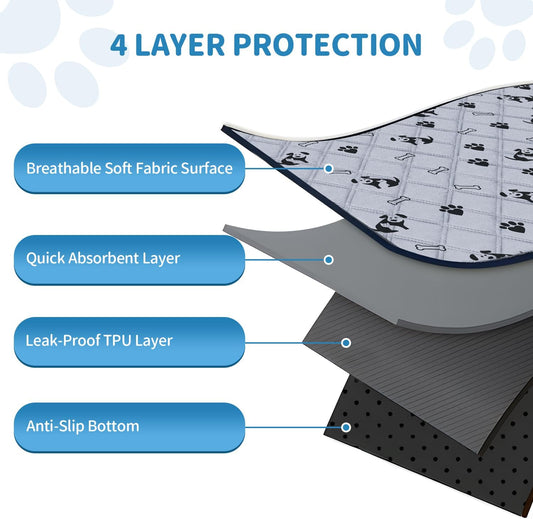 Washable Pee Pads for Dogs, 2 Pack, Non-Slip Dog Pads with Heavy Absorbency, Reusable Training Pads, Waterproof Mat for Whelping, Playpen, Crate, Kennel and Outdoors, 60X 45Cm