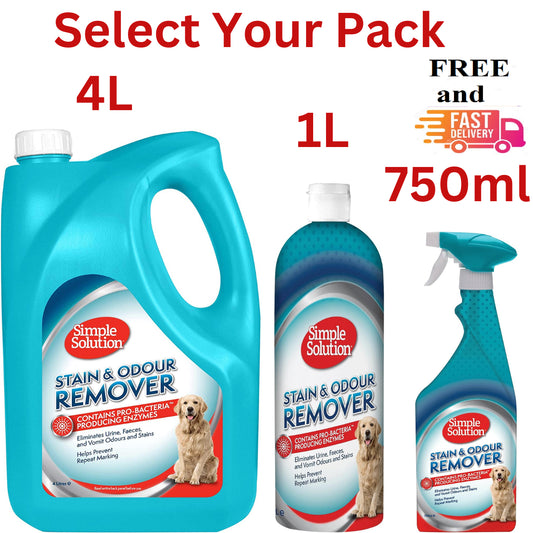 Simple Solution Dog Cat Pet Stain Odour Remover Urine Smell Destroyer Cleaner 4L